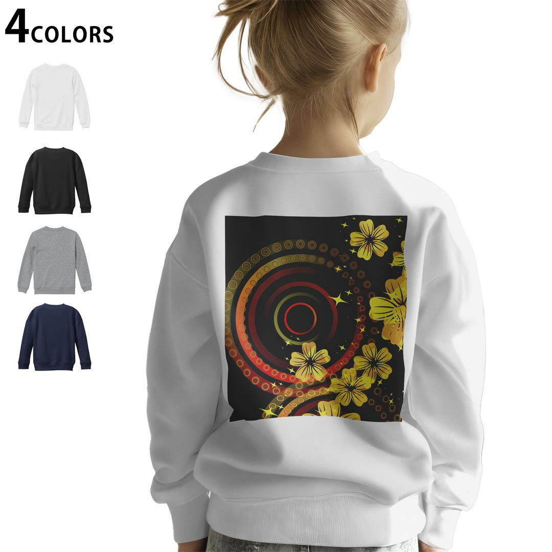 - 選べる5カラー スウェット トレーナー キッズ 男女兼用 男の子 女の子 ユニセックス unisex 長袖 デザイン リブ ホワイト ブラック 白 黒 グレー ネイビー ベージュ 110 130 150 trainer sweat 000050 蓮 和柄 ピンク