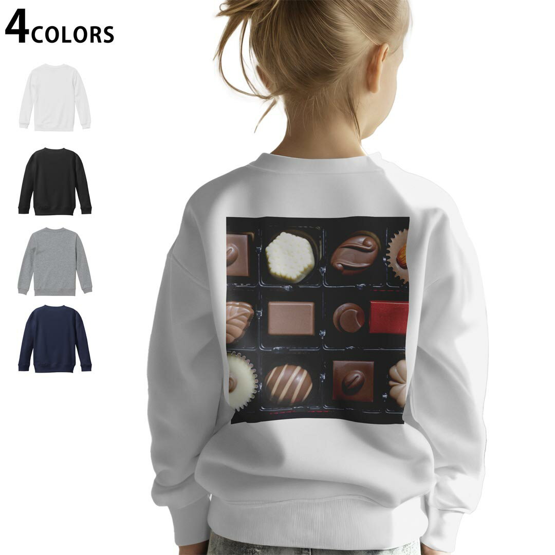 - 選べる3カラー バックプリント スウェットレーナー キッズ 男女兼用 男の子 女の子 ユニセックス unisex 長袖 デザイン リブ ホワイト ブラック 白 黒 グレー ネイビー 110 130 150 trainer sweat 000054 チョコ バレンタイン