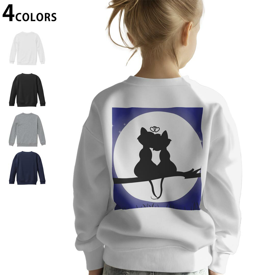 - 選べる5カラー スウェット トレーナー キッズ 男女兼用 男の子 女の子 ユニセックス unisex 長袖 デザイン リブ ホワイト ブラック 白 黒 グレー ネイビー ベージュ 110 130 150 trainer sweat 000055 猫 月 かわいい