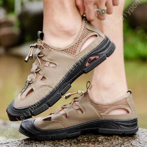 - ウォーターシューズ アクアシューズ メンズ つま先保護 靴 水陸両用 夏靴 登山サンダル トレッキングサンダル スポサン ビーサン ビーチサンダル